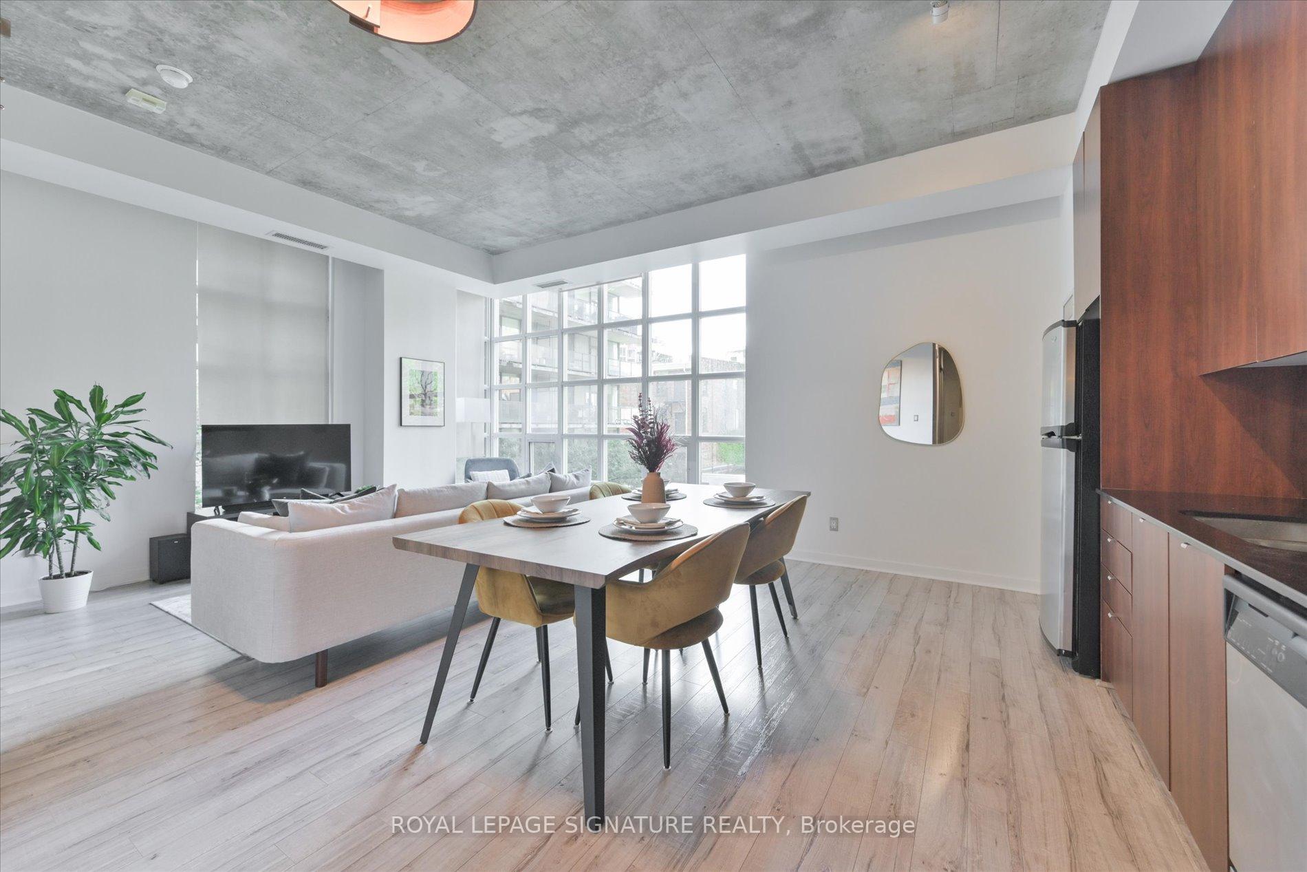 Experience the pinnacle of downtown sophistication at 23 Brant St, Unit 305. This expansive 861 sq ft soft-loft at Quad Lofts Phase II offers a rare blend of industrial edge and serene courtyard tranquility right in the heart of Toronto's vibrant Fashion District. Featuring soaring 10-ft exposed concrete ceilings and floor-to-century windows, the space is anchored by warm engineered hardwood floors that perfectly complement the authentic loft aesthetic. The heart of the home is a gourmet kitchen equipped with a built-in gas range, wall oven, and extensive storage-perfect for entertaining. Most notably, the fully enclosed den with sliding doors offers true versatility, serving perfectly as a functional 2nd bedroom or a nursery. For the modern professional, the unit features a dedicated built-in desk, creating a seamless and organized work-from-home station without sacrificing living space. Beyond the unit, you are anchored by a 100 Walk Score and immediate access to Toronto's premier lifestyle hubs. Located directly across from St. Andrew's Playground Park and just 400m from Clarence Square Dog Park, green space is always within reach. You are steps from the city's top wellness anchors, including Othership and Nutbar, with the 504 King and 510 Spadina streetcars at your doorstep. For commuters, this Metro Anchor location is only 2.2km (approx. 7 mins) from Union Station and provides rapid 8-minute access to the Gardiner Expressway via Spadina Ave, making Pearson International Airport (YYZ) an easy 28-minute drive. Families and investors will appreciate the elite school catchment, which includes Ogden Junior Public School (JK-06), Ryerson Community School (JK-08), and Parkdale Collegiate Institute (09-12), home to the prestigious International Baccalaureate (IB) Programme. With one owned underground parking space included, this property represents a high-performance lifestyle asset in one of King West's most resilient and sought-after buildings.