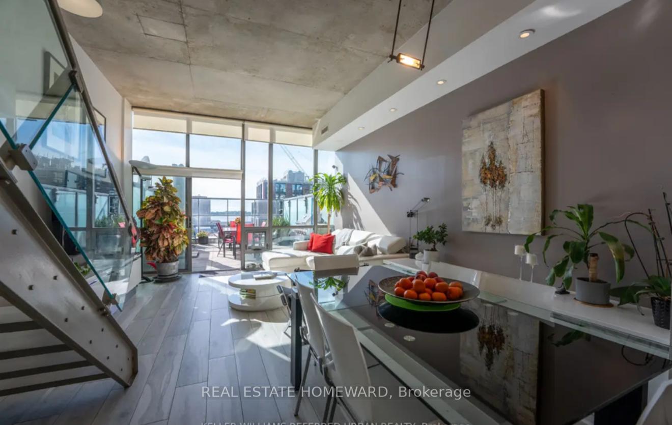 Fully Furnished * Utilities Included * 1 Parking * Live in the heart of the iconic Distillery District, one of Toronto's most vibrant and fashionable neighbourhoods! This stunning two-storey, fully furnished condo offers 948 sq. ft. of modern living space plus a spectacular 241 sq. ft. private terrace with breathtaking lake views-ideal for BBQs and outdoor entertaining. Flooded with natural light, the home features soaring ceilings, oversized windows, and a smartly designed open layout. The main floor is perfect for entertaining, while the private upper-level bedroom provides a serene retreat. Beautifully renovated, this turnkey residence boasts a custom Italian Scavolini kitchen with a full Miele appliance package, sleek ceramic floors, and stylish designer furnishings. Every detail is included-Samsung curved smart TV, washer/dryer, window coverings, light fixtures, BBQ, and more-making it truly move-in ready. Step outside and enjoy everything the Distillery has to offer: world-class restaurants, boutiques, cafés, and convenient access to transit and the future Ontario Line.This is luxury, convenience, and character all in one package-just bring your suitcase and start living! Included in the Rental Rate: Fully Furnished (including Pots/Pans, Dishes, Cutlery, and Linens) All Utilities (Heat/Ac, Hydro, Water, High-Speed Internet) Parking: One underground parking