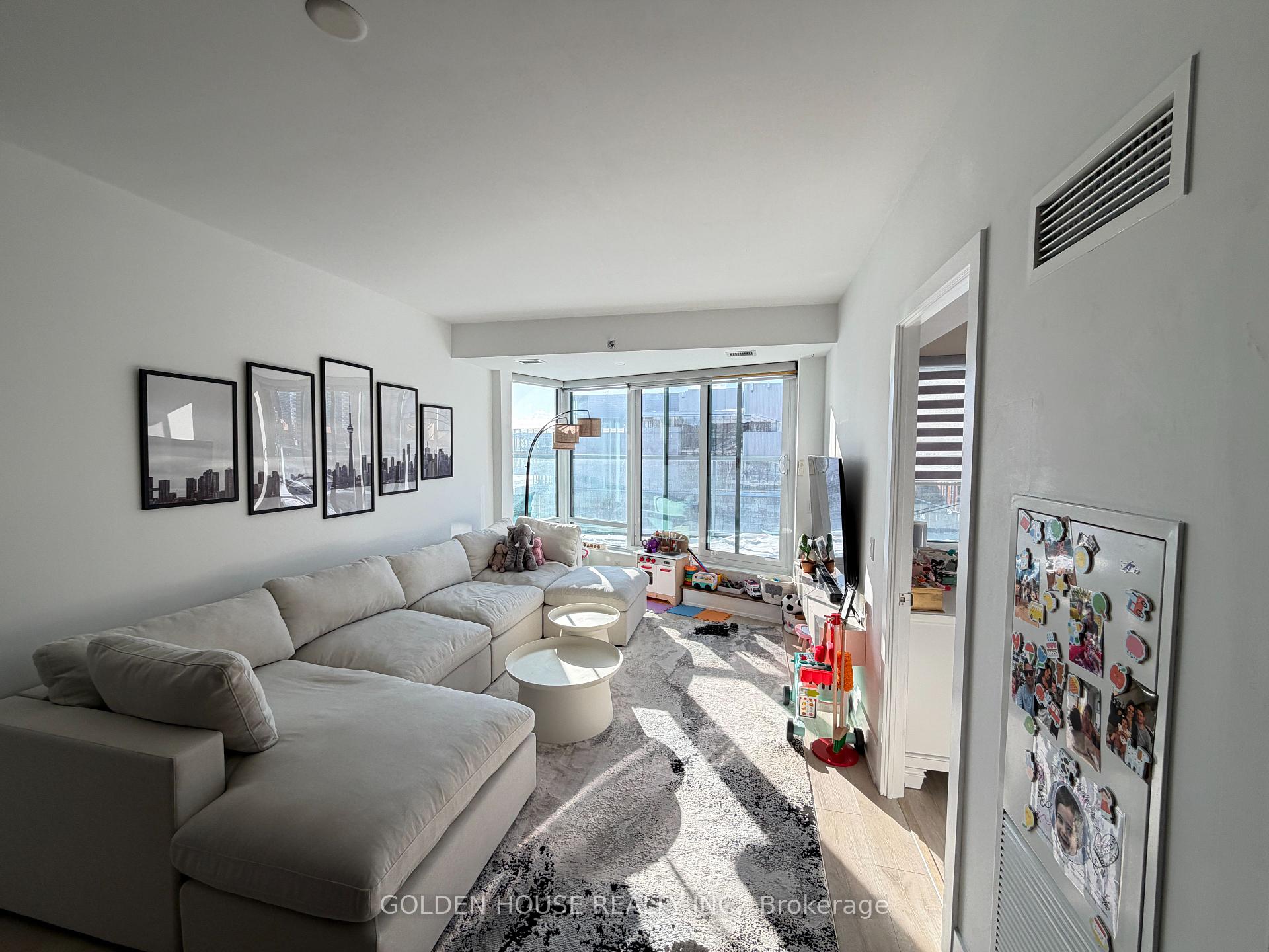 Welcome to this modern waterfront residence with a bright west exposure showcasing fantastic city and lake view. Featuring a highly functional open-concept layout with 9-foot ceilings and a terrace, offering 2 spacious bedrooms and a den. Enjoy seamless indoor-outdoor living with a walk-out terrace from your bedrooms and breathtaking city and water views. Elegant finishes include high-end laminate flooring throughout, a sleek contemporary kitchen with high-end appliances and backsplash, a double-door walk-in closet, a generous ensuite, and a mirrored closet in the second bedroom. Guest BBQ connection available on the terrace. Unbeatable waterfront location on the boardwalk-steps to Sugar Beach, TTC, George Brown College, and minutes to Loblaws, Farm Boy, LCBO, Distillery District, St. Lawrence Market, Union Station, and more.