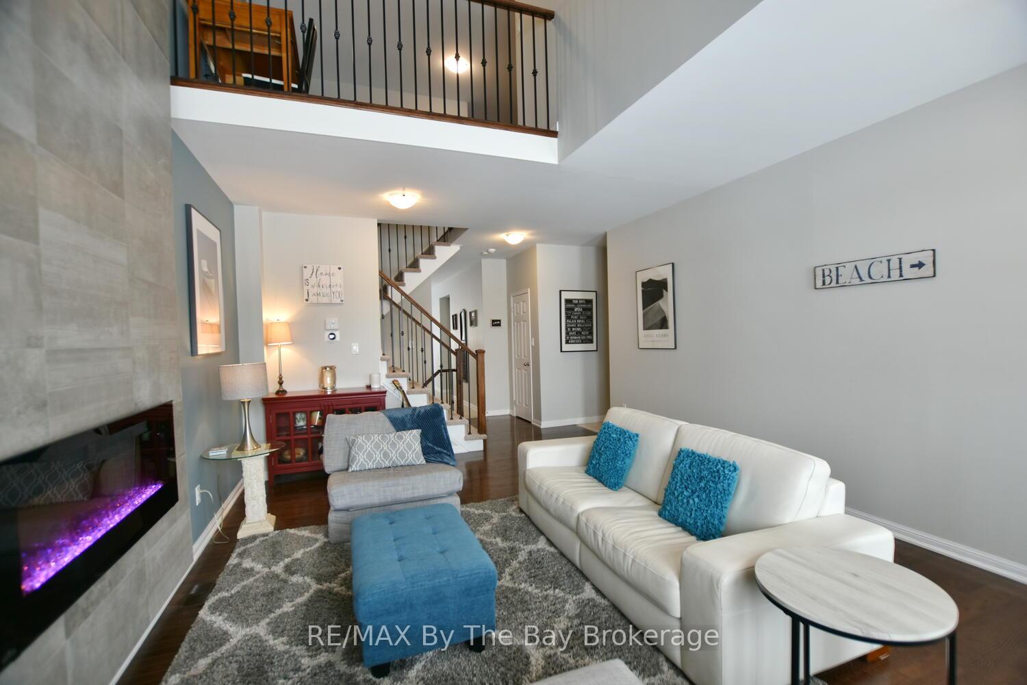 Enjoy private, peaceful living in the sought-after neighbourhood known as New England Village at the east end of Wasaga Beach. With its charming architecture and tucked away with no rear neighbours this spacious and beautifully maintained townhome backs onto a quiet walking trail with a treed setting and provides a sense of privacy and calm. The backyard is a true retreat, featuring mature trees, stunning perennial gardens, armored stone landscaping, stamped concrete walkways (2022), and inviting patio and deck spaces perfect for relaxing or entertaining. This bright and inviting townhome offers private parking with visitor parking close by, a single -car attached garage with inside entry and a true sense of community. As you enter the 1,700 sf living space plus fully finished lower level you will enjoy the thoughtful touches including a custom fireplace feature wall in the living room, high vaulted ceilings, main floor powder room, adjacent kitchen with stainless steel appliances and dining area with direct backyard access all blending comfort with elevated style. A spacious main floor primary suite offers comfort and privacy which includes a large walk in closet and 5pc bath. Upstairs a cozy loft offers lots of opportunity for office space or sitting area with the addition of two guest bedrooms and 4pc bath. Fully finished lower area provides more entertaining space with two media rooms, 4th bedroom and bathroom along with laundry facilities. This great family or lifestyle retreat is ideally located close to the new community arena and library, new high school with theatre, shopping and beaches meanwhile quick access to Barrie. Maintenance fees also provide worry-free living, covering lawn care, fall cleanup, common repairs, and exterior upkeep. This warm and welcoming year round home offers the perfect blend of space, style and thoughtfully designed for easy living.