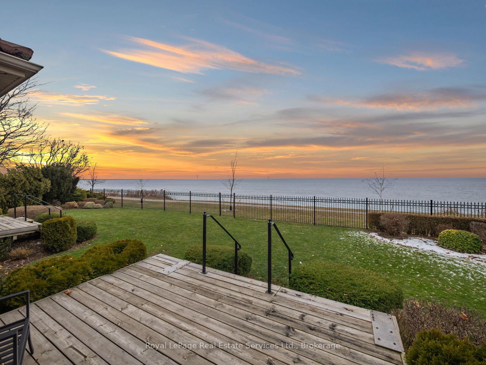 Spectacular lakefront property with 93' frontage on Lake Ontario. Located on a quiet, mature cul-de-sac, this custom built, family home offers 4+1 Bedrooms, 3.5 Baths with over 2800SF above-grade + 1400 SF Finished Lower Level. Architecturally designed with wall-to-wall windows overlooking the lake, solid brick construction with clay tile roofing, this home was built to last. 9 and 10 ceilings on the main floor. Oak hardwood floors throughout both levels. Grand entrance foyer with oak staircase. Beautiful Living Room with fabulous antique marble fireplace surround with gas insert open to Dining Room with wall to wall patio doors to the terrace with incredible lake views. Fabulous Kitchen/Breakfast Room is a blank canvas with the perfect space to install the waterfront Kitchen of your dreams. Walk-outs to both decks and open to the the Family Room with stunning marble fireplace with gas insert. The main floor features a mudroom with side entry and inside entry from full-sized two-car garage. The Primary suite features oversized windows and a walk-out to second floor balcony with outstanding lake views, luxury ensuite bathroom and walk-in closet. Two more Bedrooms overlook the lake with oversized windows. The front Bedroom opens to a bonus room above the garage which could be handy as a Den or quiet retreat. The Lower Level has excellent ceilings height, good windows and features 1Bedroom, 3-Piece Bathroom, Recreation Room, Den, Laundry Room, storage and more. Beautifully landscaped and maintained property fully fenced with wrought iron gate access to the lake. Cobblestone driveway accommodates 4 cars. Outstanding value on Lake Ontario. A must see