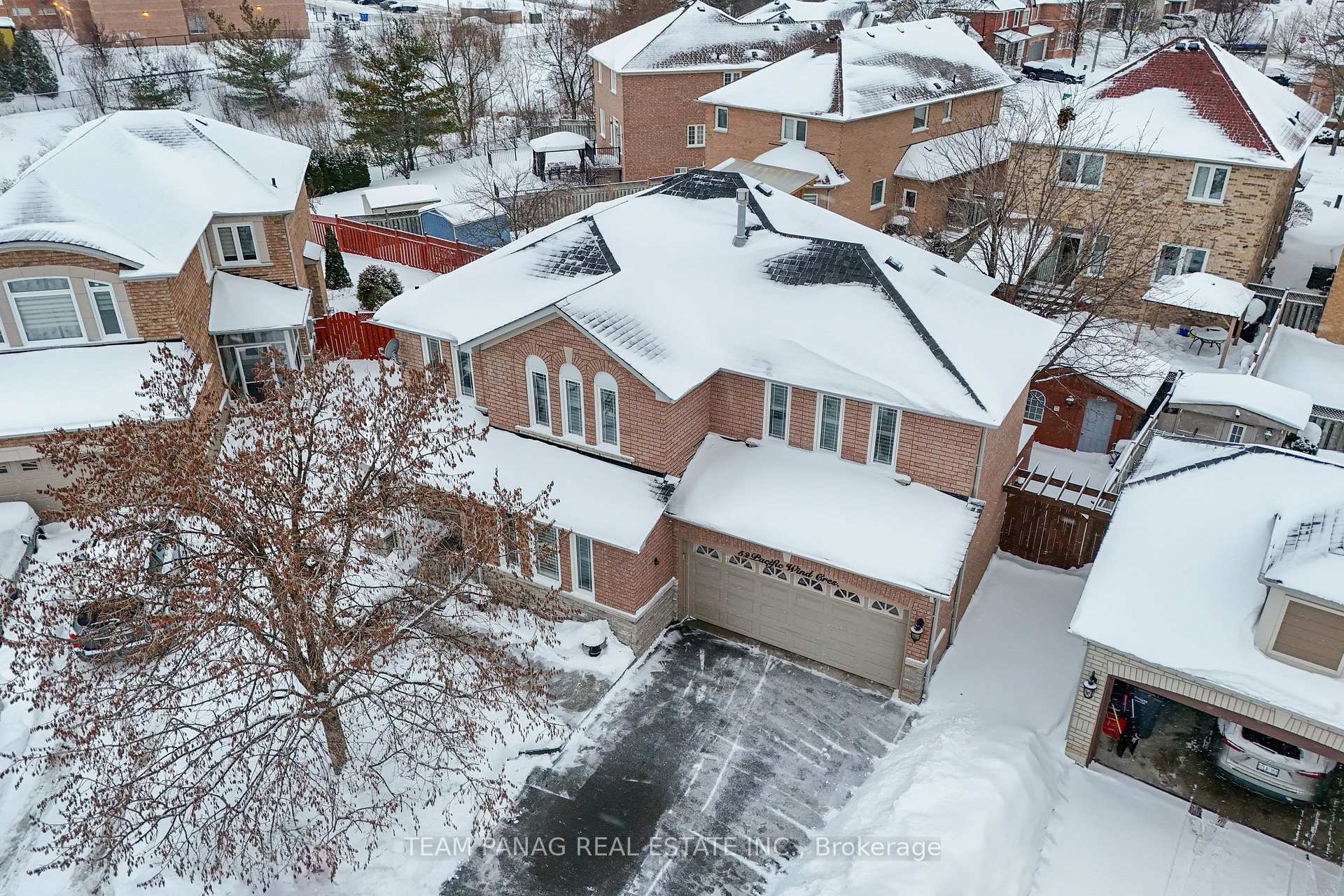 Welcome to this BEAUTIFULLY MAINTAINED residence offering thoughtfully designed living space. Blending privacy, comfort, and style - this exceptional home is nestled on a quiet lot. Features a concrete stamped driveway with up to 6 CAR PARKING (2 Garage, 4 Driveway). Step inside to a striking entrance welcomed by an elegant statement chandelier. Pot lights throughout the entire home, including the basement. The main level showcases elegant flooring, a sleek gas fireplace, and a stylish powder washroom, ideal for everyday living and entertaining. Staircases accented with iron pickets add timeless character and durability, complementing both modern and traditional design. The chef-inspired eat-in kitchen impresses with a coffered ceiling, beautiful tile backsplash, countertops, and custom cabinetry. Premium features include a built-in stainless steel refrigerator, gas cooktop, built-in wine rack, and California shutter blinds. The kitchen walks out to an open wooden patio/solarium, flooded with natural light offering panoramic seasonal views. The main-floor laundry room includes a washer, dryer, separate laundry sink, and built-in storage. Upstairs, the spacious primary bedroom offers a walk-in closet and spa-inspired ensuite with a standing glass shower. Additional bedrooms are generously sized. The private backyard is surrounded by trees and features a stunning open-concept patio with wooden beams, pot lights, and a warm, cozy ambiance. The fully finished basement includes pot lights throughout and a dedicated kitchen, ideal for extended family or separate entertaining. Major updates include roof, windows, exterior doors, air conditioning, and furnace, all replaced within the past five years. Kitchen appliances are also less than five years old. Freshly painted, this move-in-ready home is minutes from Hwy 410,Trinity Common Mall, parks, and top-rated schools-offering space, elegance, and lasting value in one of Brampton's most sought-after neighborhoods.