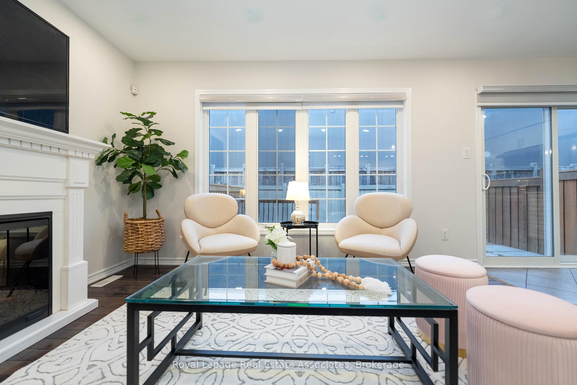 Carpet-free freehold townhome on a family-friendly cul-de-sac with no sidewalk & no rear neighbours. The bright, open-concept main floor features an elegant, sun-filled living room with large windows, an electric fireplace, and a walkout to a private backyard with a large deck-perfect for entertaining. The functional eat-in kitchen offers stainless steel appliances, ample counter space, and plenty of cabinetry. Upstairs, the spacious primary bedroom includes a walk-in closet and a private ensuite with a glass shower. Recent upgrades include fresh paint (2025), refreshed deck (2025), powder room (2024), pot lights (2021), laminate flooring (2021), and fridge (2024), stove (2024) dishwasher (2024), plus zebra blinds (2025). The unfinished basement with bathroom rough-in provides great potential for future living space. Conveniently located minutes to GO Station, parks, schools, shopping, and situated in Milton's Willmott neighbourhood, a highly desirable community.