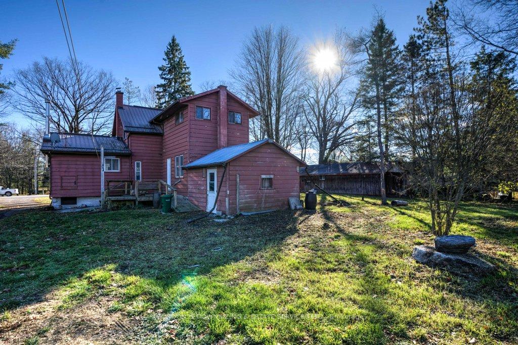Nestled on a private, heavily treed 2+ acre lot in Foxboro, this nearly century-old country home exudes warmth and character with its charming wood siding and Southwestern exposure. Inside, the main floor features a homey living room, a separate dining room open to the kitchen, and a convenient laundry/mudroom, all complemented by a three-season sunroom that invites you to enjoy the surrounding nature. The living room has a south-facing picture window and a cozy woodstove, creating the perfect space to gather on cool evenings. Upstairs, you'll find two comfortable bedrooms and a spacious open area ideal for guests, a home office, or a quiet reading nook. The home's layout provides flexibility for modern living while retaining its original country charm. The open space could be converted into a third bedroom by adding a wall. Perfect for hobby farmers or nature enthusiasts, the property includes several outbuildings-a two-story post-and-beam barn, chicken barn with additional coops, a woodshed, and storage sheds-offering endless possibilities for small-scale farming, workshops, or creative projects. This well-loved home is ready for your updates and finishing touches, providing the opportunity to craft your own country retreat in a natural setting located 8 km north of the 401. Home, well, septic and WETT inspections available.