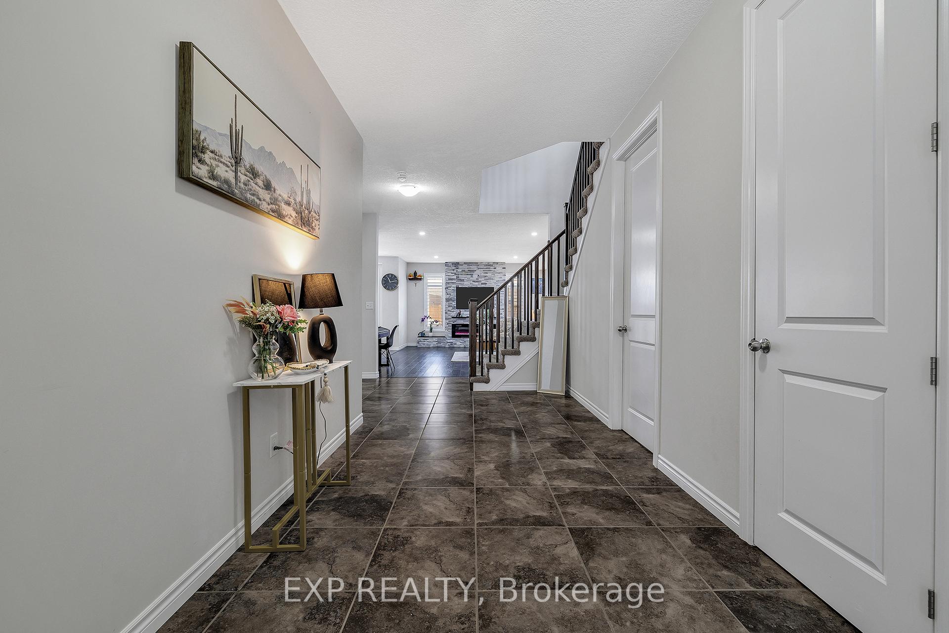 Welcome to 297 Thomas Slee Drive in Kitchener, a beautifully maintained 4-bedroom, 2.5-bathroom detached home built in 2016, located in the highly desirable Doon South / Pioneer Park neighbourhood. Just steps from Groh Public School and minutes to Highway 401, this home offers an ideal setting for families and commuters alike. Offering approximately 2,700 sq ft of above-grade living space, the bright main floor features spacious living areas filled with natural light and enhanced by 9-foot ceilings. Elegant California shutters throughout the main and second floor provide timeless style and privacy. An electric fireplace creates a warm focal point, perfect for relaxing evenings or entertaining guests. The kitchen includes white cabinetry, black granite countertops, under-cabinet lighting, and a generous walk-in pantry, providing both style and function. Upstairs, you'll find four generously sized bedrooms and well-appointed bathrooms designed for comfortable family living. The unfinished basement offers excellent potential for additional finished living space or possible secondary use, subject to city approvals. Outside, the exposed concrete triple-wide driveway and matching backyard patio create impressive curb appeal and outdoor entertaining space. The fully fenced yard offers privacy and room to grow. Additional upgrades include an approximately five-year-old air conditioner and owned water heater and water softener, eliminating rental fees and ongoing monthly costs. Located near parks, trails, shopping, transit, and major commuter routes, this move-in-ready home provides the perfect balance of peaceful residential living and everyday convenience in one of Kitchener's most established family communities.