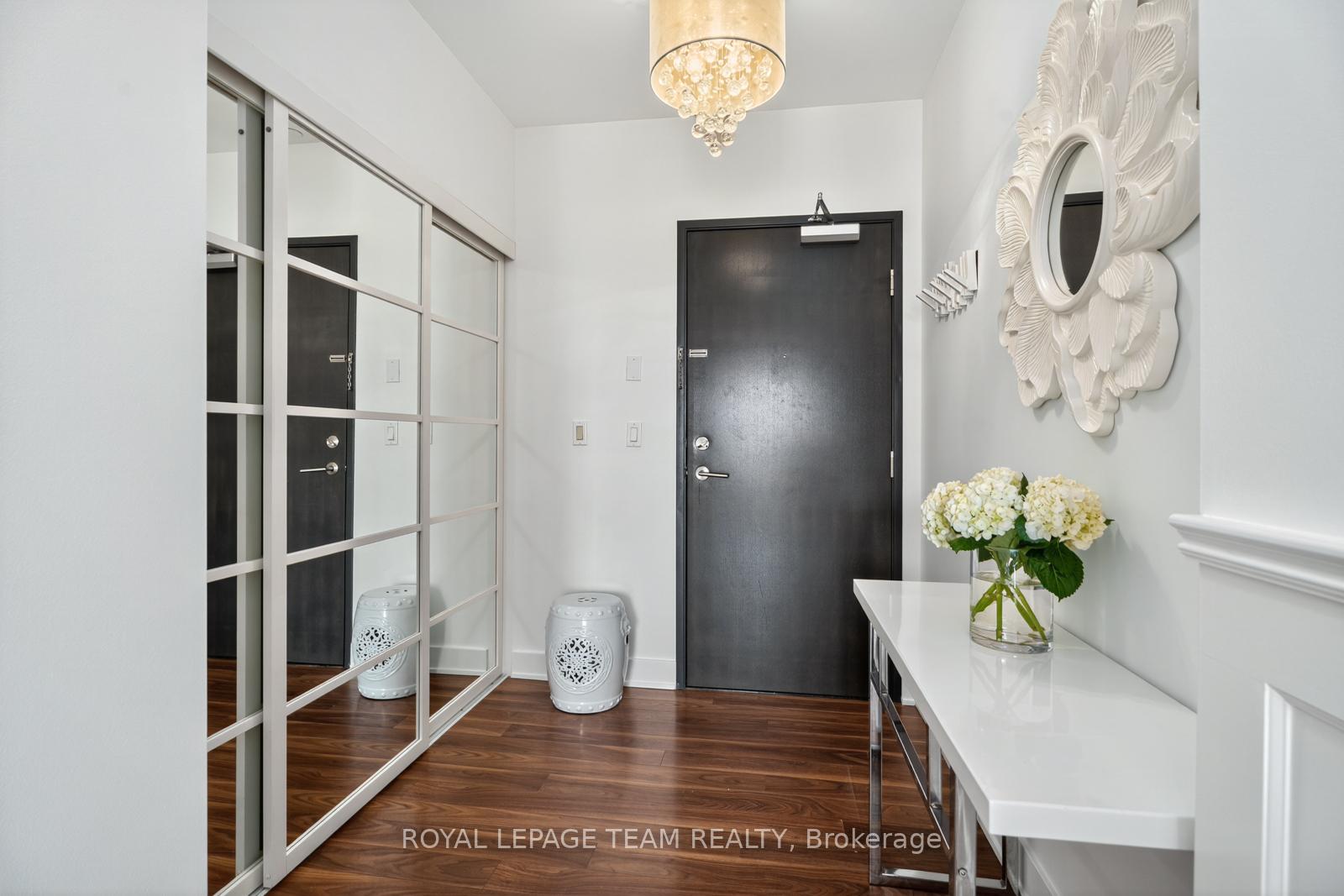 Penthouse 3 atThe Vibe delivers luminous, south& east-facing views over the famous Rideau Canal&historicAberdeen Pavilion. Floor-to-ceiling glass frames Ottawa's most iconic scenes-farmers' markets, winter festivals&CityFolk concerts, all from your private terrace.The entry wows with chandelier, extra high ceilings, illuminated closet, full-sized washer/dryer.Beyond: custom office nook with glass desk and built-in storage, next to the bright guest bedroom with incredible stadium views.Find a glamorous kitchen with quartz counters, marble backsplash&custom pantry. Bright island with custom millwork looks towards dazzling windows.The living/dining is anchored by custom fireplace with marble surround&built-ins, chandelier, and jaw dropping views, which continue into the romantic primary, with its tailored walk-in & luxurious ensuite.The Vibe offers boutique-hotel amenities: chic lounges, fireside gathering spaces, large gym& conveniently located parking.Bright, polished, glamorous-a residence at the very heart of Ottawa's cultural life