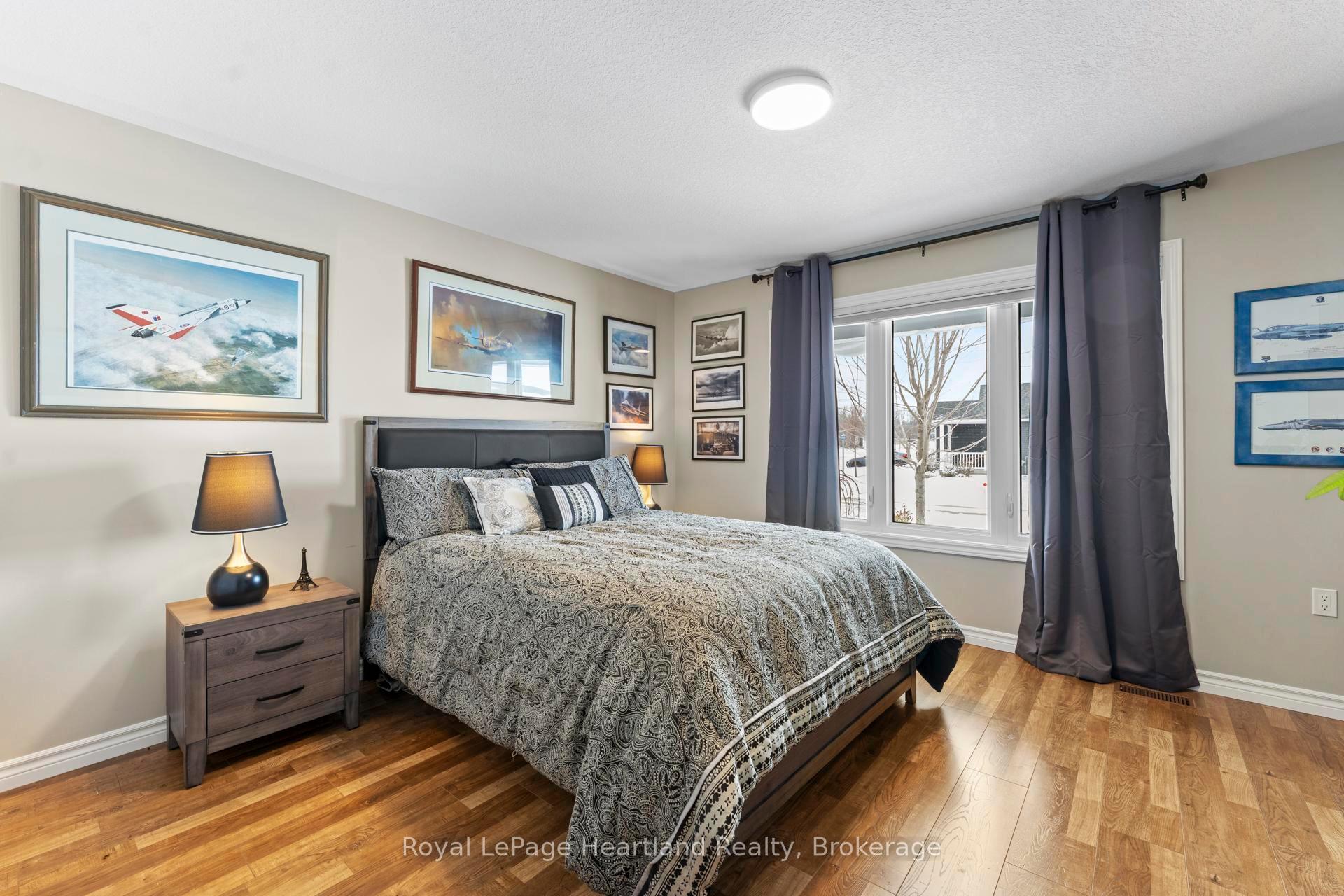 Prime location near the lake! Set in the highly sought-after Bluffs at Huron, this immaculate bungalow backs onto an open field and natural environment, offering a peaceful backdrop and privacy, while still being a short stroll to the community rec centre, lake access, and all the lifestyle perks that make this waterfront neighbourhood so desirable. This impressive "Lakeside with Sunroom" model offers approx. 1,455 sq ft of designed living space and a long list of quality upgrades. Curb appeal shines with manicured landscaping, mature trees and an inviting front porch. Inside, the bright, welcoming layout is finished with high-end continuous flooring and upgraded lighting. The custom kitchen is a standout with abundant cabinetry topped with crown moulding, soft-close doors, quartz countertops, tile backsplash, under-cabinet lighting, an enlarged centre island, built-in microwave, high-capacity range hood fan, Bosch panel dishwasher, and induction stove. The kitchen flows seamlessly into the dining area and sunroom featuring a tray ceiling and patio doors to the outdoors. Step outside to a spacious south-facing composite deck complete with gazebo, privacy wall, and a professionally installed 16' x 16' stone patio-perfect for entertaining or quiet evenings. The generous primary bedroom offers a walk-in closet and 3-piece ensuite. A second bedroom and a stylish 4-piece main bath complete the main level; both baths are upgraded with quartz counters, tile details and glass sliding shower doors. Relax in the living room beside the contemporary low-profile Solas gas fireplace with remote. Enjoy plenty of storage with multiple closets, a full crawl space, and an attached two-car garage. Bonus: six appliances included. Located in an upscale land lease community with a private recreation centre and indoor pool, close to shopping and several golf courses. Book your private showing today!