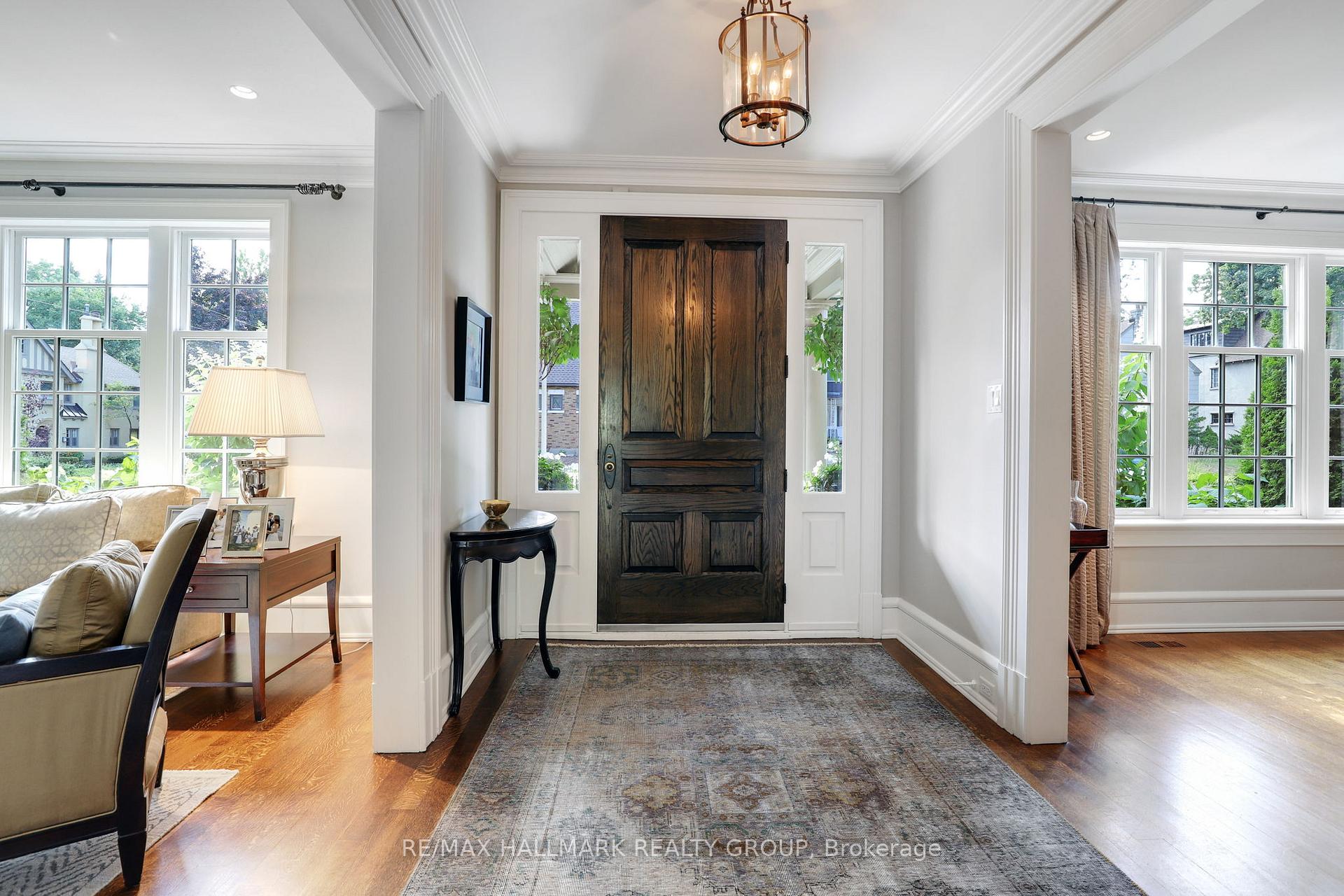 A rare offering in Ottawa's prestigious Island Park neighbourhood - 525 Piccadilly Avenue is a Barry Hobin designed corner estate with interiors by 2H Design, blending heritage character and modern luxury across four levels. The grand foyer sets the tone with soaring ceilings, rich hardwood, and detailed millwork. Formal living and dining rooms feature original hutches, restored shelving, and a marble fireplace. A spacious family room with bay windows, marble gas fireplace, and custom cabinetry opens to the designer kitchen and outdoor living. The kitchen showcases antique mirrored cabinetry, leathered quartz counters, a custom range hood with gas range and steam oven, wine tower, and oversized island paired with a breakfast room complete with serving area and office nook. A herringbone marble tiled mudroom with custom cubbies connects via breezeway from the over-sized garage for discreet family entry. French doors lead to a resort-style backyard with terraced dining, built-in BBQ kitchen, gunite pool with spa and water feature, and multiple lounge decks surrounded by manicured gardens. The second level offers a serene primary suite with bay window views, travertine and limestone ensuite, and dual walk-in closets. Two more bedrooms incl. another with ensuite as well as one currently used as den/office, and four-piece bath complete the floor. The third level is host to spacious bedrooms with full bath between the two. The lower level includes a recreation room, gym with infrared sauna, custom wine cellar, nanny/guest suite with bath, laundry, and ample storage. Timeless architecture, designer finishes, and exceptional outdoor living make this Island Park residence an extraordinary opportunity.