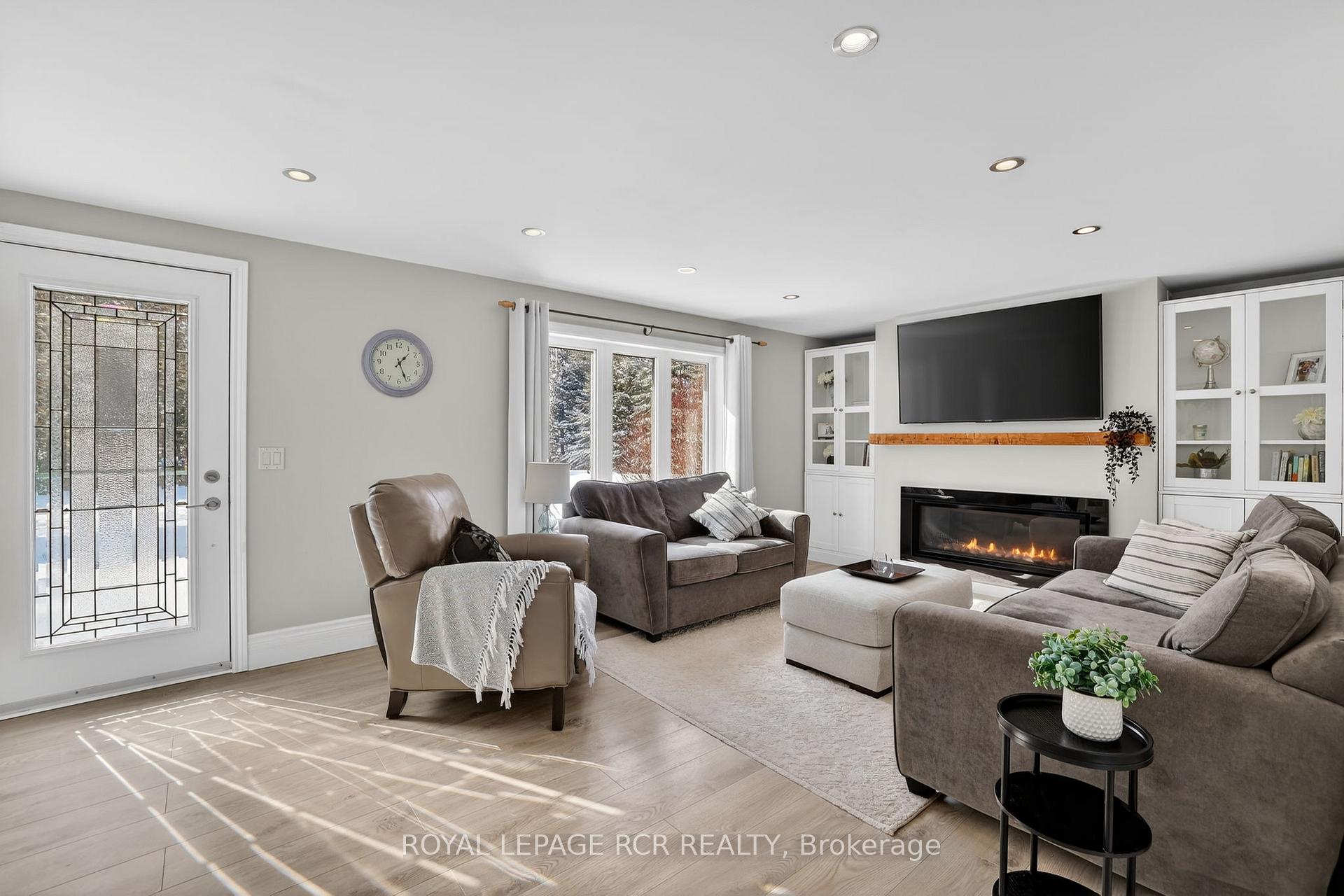 Welcome to this thoughtfully designed, modern bungalow set on a very private and scenic 1.25-acre lot, surrounded by mature trees and offering exceptional privacy. Ideally located just 15 minutes from both Orangeville and Fergus, and near Trafalgar Road, this home offers a great commuter location while still enjoying the peace and seclusion of country living. Completely renovated from top to bottom, this very bright home features neutral décor throughout and has been exceptionally maintained. The modern kitchen showcases quartz countertops, stainless steel appliances, and a walkout to a private deck overlooking the grounds, complete with a hot tub and pergola - perfect for relaxing or entertaining in total privacy. The sun-filled main floor family room is a true focal point, featuring a gorgeous modern fireplace with custom built-in cabinetry, creating a warm yet sleek living space. The spacious primary bedroom offers his and her closets, while two additional bedrooms, a stylish main floor full bathroom, and a convenient powder room complete the main level. A side entrance leads to a practical mudroom, ideal for everyday living. The finished basement expands the living space with a spacious recreation room, a dedicated exercise area, and a second full bathroom. Both full bathrooms feature heated floors for added comfort. An oversized double car garage provides excellent storage and utility. Set back from the road, this beautifully landscaped and private 1.25-acre property has been carefully planned and designed throughout. A must-see home, best appreciated in person!