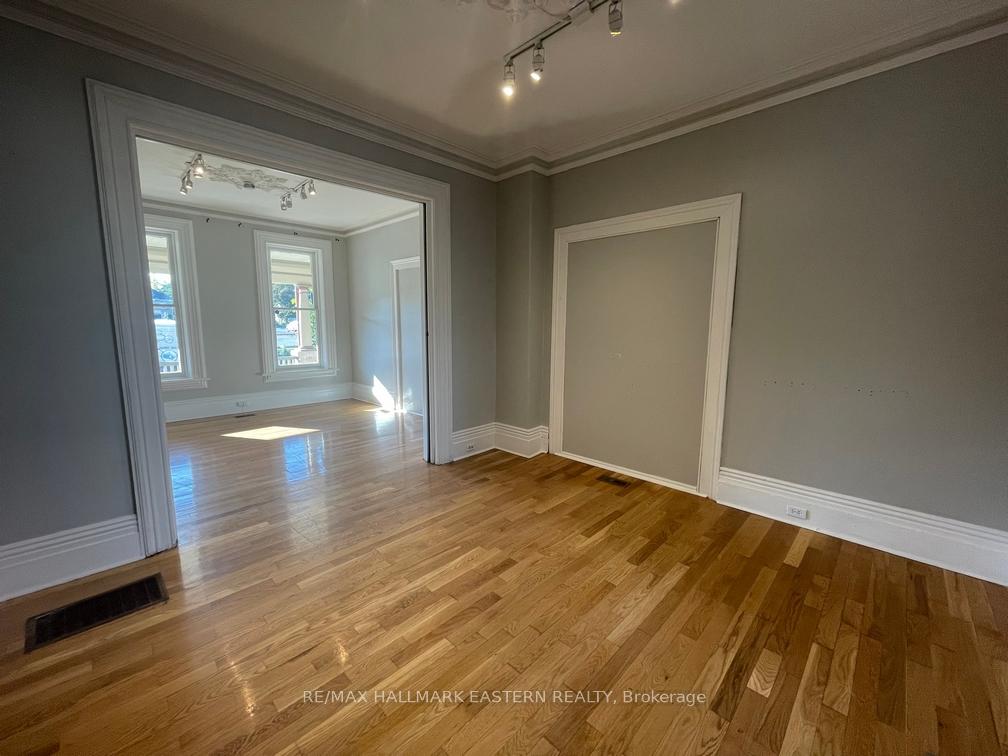 Bright, beautiful commercial space for lease in historic Cox Terrace, a National Historic Site. Highly recognized location on busy section of Rubidge Street with high visibility. Perfect for professional office or commercial use. Front and rear entrances, private paved parking, high ceilings, beautiful historic features preserved. Full unfinished basement for storage. Rental rate $1,695 + utilities and HST. Must be seen.