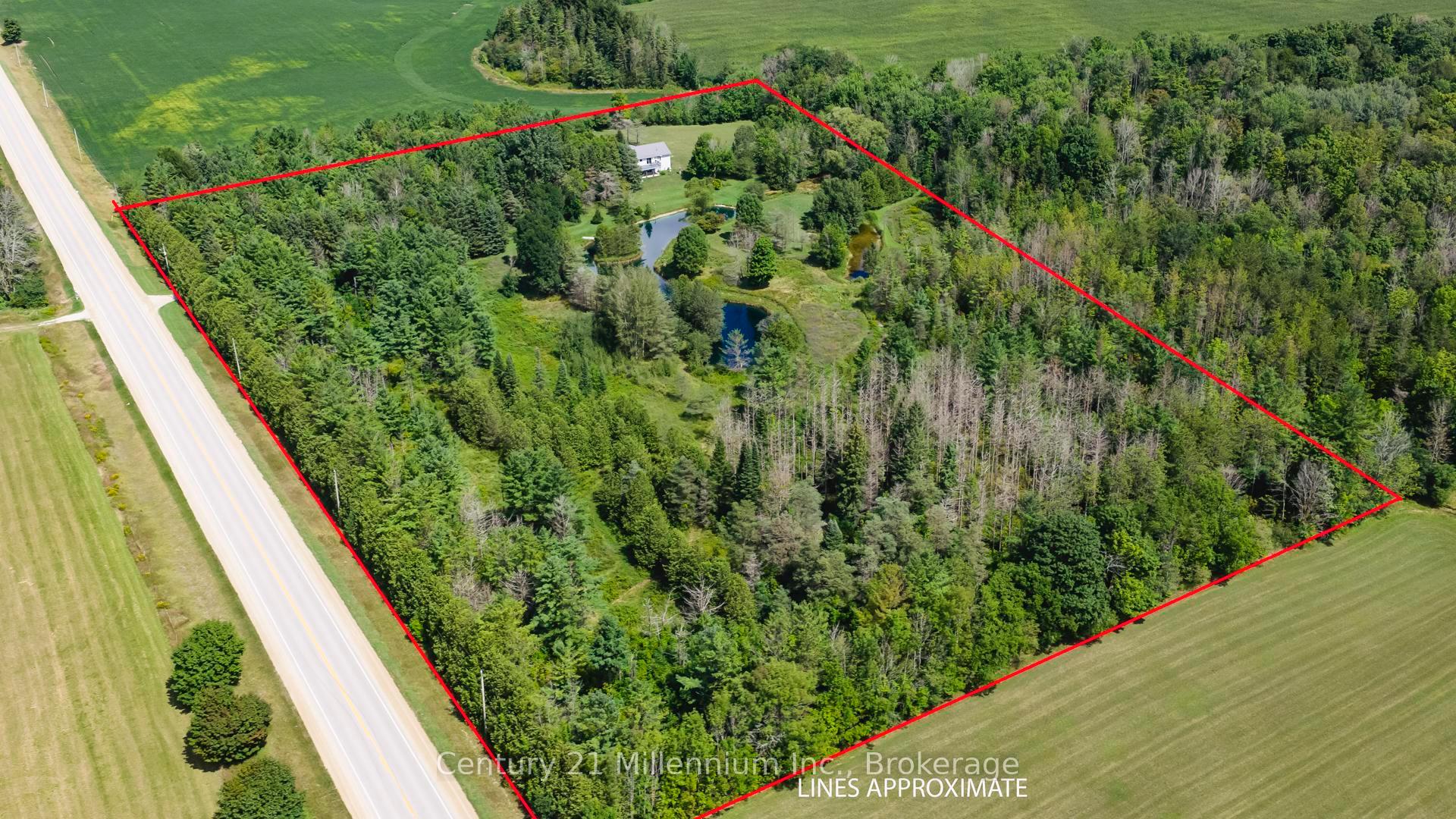 A private tree-lined laneway, with nature trails on either side, lead you to a private oasis, offering peace and tranquillity in abundance. You emerge upon an impressive bungalow with large gleaming windows and a patio overlooking the immaculately manicured grounds. Everywhere you look nature is right by your side! Over 14 acres of trees, garden and a Bass stocked pond, surrounded by flora and fauna. The main floor offers open concept living; a family room with a vaulted ceiling, overlooking the front garden - just walk out to the patio doors. A fully fitted kitchen with centre island overlooking the social dining area and the walkout to the south facing rear deck overlooking the pond. The primary bedroom has a 3-piece ensuite and walk-in closet and overlooks the green space. The two other bedrooms on the main floor offer built in closets and overlooked the front of the home. A laundry room combined with a separate 2-piece washroom completes the main floor accommodation. The lower level features a large family room with a walk out to the covered patio, offering stunning views over the grounds, the pond and trees as far as the eyes can see. And it's all yours! With two more bedrooms and tons of storage space, this area is waiting for your ideas! The attached oversized double car garage offer storage space in abundance or extra vehicle parking. Across the driveway is a standalone 24 x 36 double car garage/workshop, versatile for whatever your needs demand. The 8 x 16 Fleming shed is handy to store garden tools and equipment. Located a short drive from Mount Forest, just an hour from KW, this extraordinary property is an ideal opportunity to invest in the peaceful lifestyle many people dream of. Rural but close to towns, this home is the best of both worlds - and comes with an extremely desirable view.