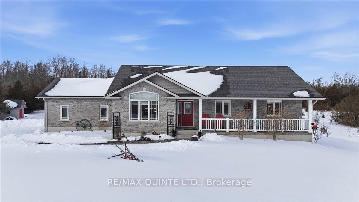 Experience the perfect blend of modern luxury and rural serenity in this stunning 2014-built bungalow, situated on just under 6 sprawling acres only 8 km from the heart of Picton. The open-concept main floor features a chef-inspired kitchen with sleek quartz countertops and a layout designed for effortless entertaining. This level offers three spacious bedrooms and two full bathrooms, highlighted by a sophisticated primary suite featuring a large vanity, custom walk-in tiled shower, and a heated towel rack for a truly curated spa-like experience. Providing ultimate peace of mind for country living, the home is equipped with a Generac backup generator system that services half the house, ensuring essential power and comfort regardless of the weather. The fully finished lower level provides even more versatile living space, including a convenient half-bath and the potential for a fourth bedroom or home office. Step outside to your private outdoor oasis, where multiple tiers of custom decking seamlessly integrate with a refreshing saltwater above-ground pool. This expansive backyard setup is the ultimate venue for entertaining, offering an elevated platform for large summer gatherings or quiet evenings overlooking your massive acreage in total privacy. Combining modern efficiency with the peace and quiet of the County, this move-in-ready property is the ultimate retreat.