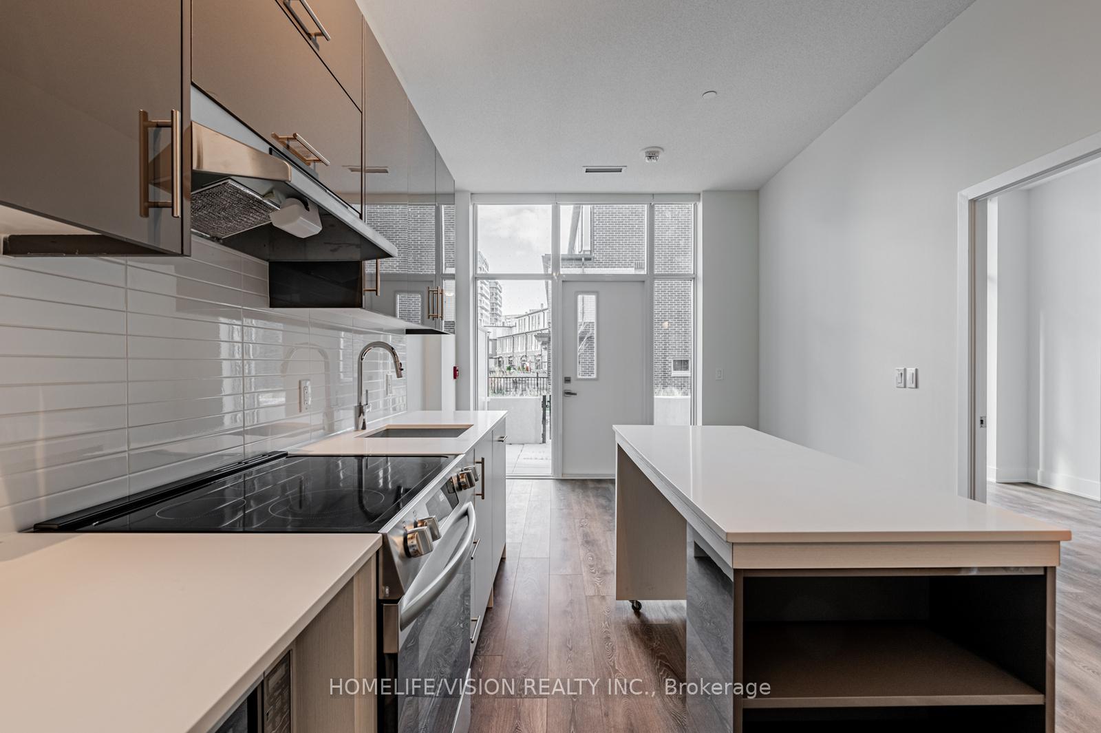 Fabulous "like-new" ground floor 1+1 bedroom, 2 washroom unit in a prime North York location. This immaculately maintained suite features soaring 10-foot ceilings, laminate flooring throughout, and upgraded automated blinds for ultimate convenience. The modern kitchen is equipped with built-in stainless steel appliances, quartz countertops, and a mobile island. The versatile den offers a perfect space for a home office or nursery. Enjoy a massive private terrace with a peaceful garden view and the rare benefit of a private entrance directly from the patio. Ideally situated just steps from the elevator for easy access. Steps to Fairview Mall, Don Mills subway station, T&T Supermarket, restaurants and the library. Quick access to Hwy 404, 401 and the DVP. Building amenities include a 24 Hr concierge, gym, yoga studio, co-working space, party room, plenty visitor parkings and rooftop terrace with BBQs. 1 Parking & 1 Locker Included at P2.