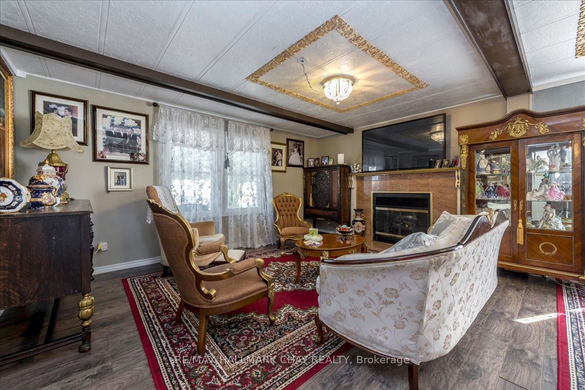 Fantastic Opportunity in Innisfil's Sought-After Sandycove Acres! Beautifully updated 2-bedroom, 2-bathroom home offering approximately 1,120 sq. ft. of stylish, comfortable living space-backing onto private green space for added tranquility. Enjoy a bright sunroom with walkout to your own secluded backyard oasis, complete with mature trees, extensive decking, pergola, shed, and multiple seating areas-perfect for relaxing or entertaining! Step inside to a fully equipped kitchen featuring granite countertops, backsplash, and stainless steel appliances. A grand formal dining room and a spacious living room with fireplace provide elegant and cozy gathering spaces. The generous primary bedroom includes a walk-in closet and private ensuite bath. A second full bathroom offers double sinks and convenient in-suite laundry. KEY UPDATES: Kitchen, Bathrooms, Flooring, Lighting, Sunroom, Front & Back Decking & Landscaping. Private 2-car driveway. Cozy front porch with covered entry. Ample storage throughout. Located just minutes from shops, restaurants, beaches, marinas, golf courses, and the incredible Friday Harbour Resort. Enjoy year-round amenities and events in this welcoming, mature community. Don't miss your chance to call this peaceful retreat home! Land lease total: includes property taxes $1051.43 per month