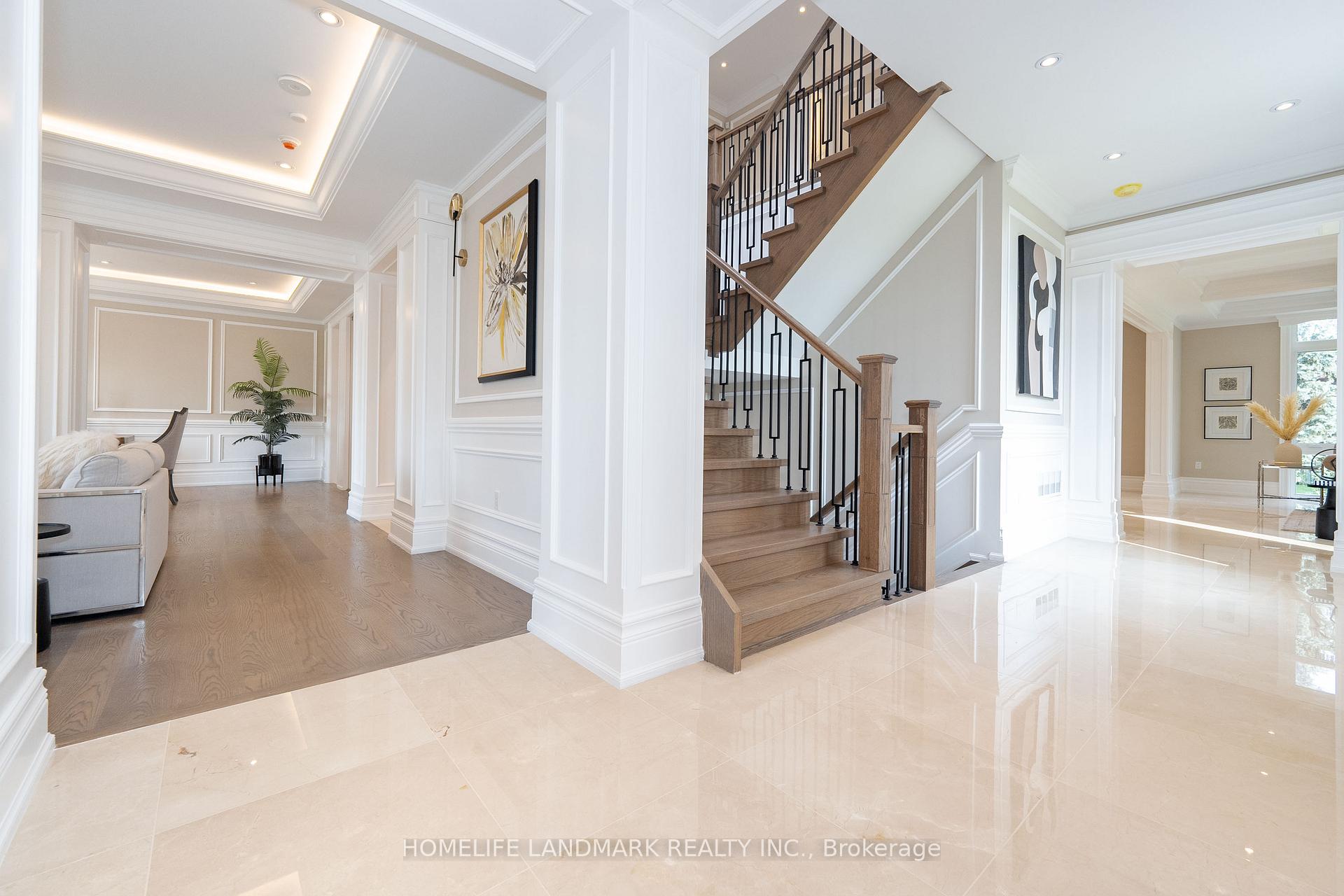 This State-Of-The-Art Custom Design & Built New Home On Dexter Rd In North Richvale Richmond Hill Exemplifies High-End Materials And Expert Craftsmanship. Built by Steel Structure + Concrete slab Sub-Floor for whole framing. Approx. 7679 Sq.ft.( 5576 SQ+2103 Basement) of Living Space Sitting on the Quiet Premium Lot (~58'x 127/162'), Timeless Indiana Limestone Facade Coupled With Exceptionally Elegant/Exquisitely Tailored-Crafted Precast/Brick Exterior with Craftsmanship, Covered 2 stories Porch with Precast columns, 3 cars parking garage, Back yard interlocking, Mahogany Main Door Met w/ Ultra-High Ceiling Foyer, Custom Ceilings and Paneled Walls Thru-Out Main And 2nd, European Grand Slab Porcelain for fireplaces and all 2nd showers walls, Stained Oak Hardwood Floor Throughout, Shinning Natural Marble Tiles with Epoxy, Elevator provides convenience to All floors, Chefs Gourmet Kitchen presents Natural Granite countertops & island W/ Top End B/I Appliances of Sub-Zero & Wolf, Custom cabinetry, Temperature Controlled wine cellar, Large Primary Bedroom Sitting with 2 way fireplace & Coffered Ceiling, Generous large Dressing WIC Room With Island & 6Pcs Ensuite. Heated Floors In Bathrooms, all other 3 bedrooms with 3pcs own Ensuite, skylights, and illuminated lighting. The Basement Is An Entertainer's Dream: Wet Bar, Home Theatre Area, Sauna Suite, Media & Rec Room etc. Must See!