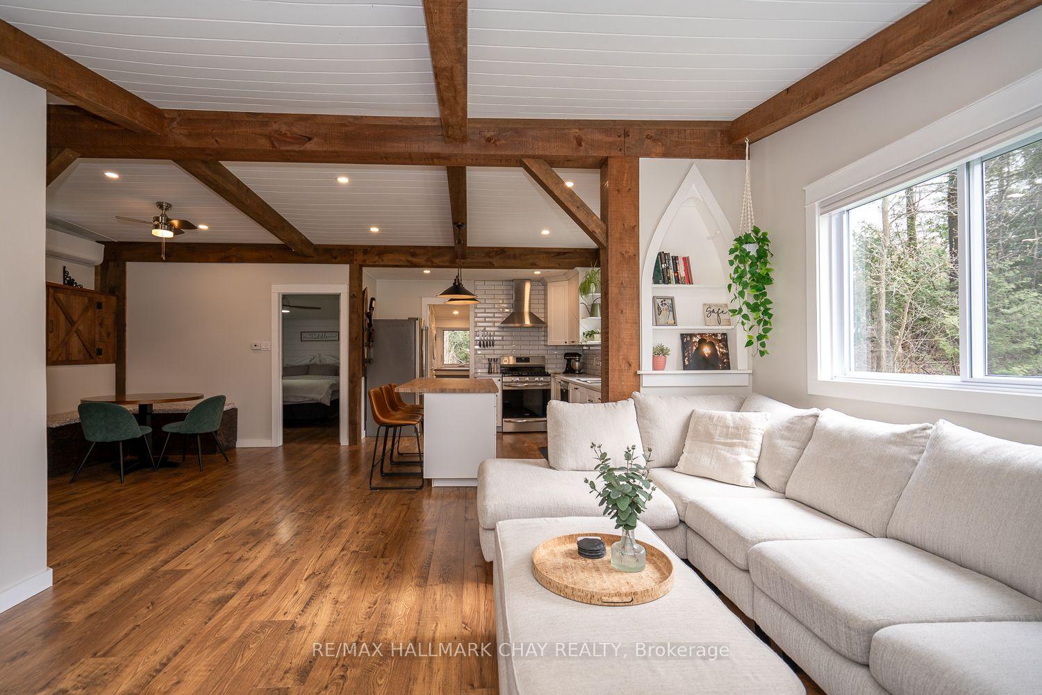 TOTALLY PRIVATE RIVERFRONT BUNGALOW ON 2/3 OF AN ACRE!...............Rare find at this price point...............Long driveway with trees at the perimeter creating complete privacy (house can barely be seen from the road), but lots of open useable lawn space as well...............Flowing river surrounding the property offers a nice tranquil setting...............Quiet road with next to no traffic...............Open concept Interior is incredibly clean, bright, and modern, but also has some nice charm and character mixed in with exposed wood beams...............Kitchen has a very fresh feel to it, and features breakfast bar island, large range-hood, SS appliances, and subway tile backsplash...............Great use of space, with square, well-defined rooms...............Outdoor storage includes 2 sheds, one of which is quite large...............Nicely updated 4 pc bathroom is combined with laundry...............Propane fireplace and wall-unit AC heat and cool main living area, bdrms and bathroom have electric baseboards...............Entire home is carpet free...............Both bedrooms do not have conventional closets...............This truly is an incredible property for those seeking privacy, comfort, and tranquility at an affordable price.
