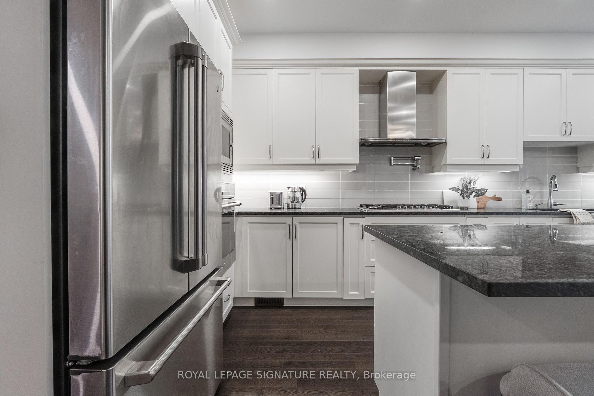 Welcome to 14 Queen Mary Court-modern, spacious, and thoughtfully designed living in the heart of Vaughan. This 4+1 bedroom, 4.5 bathroom townhome offers incredible flexibility for families, multi-generational living, or work-from-home needs. The main level features a private bedroom with a full washroom and a walkout to the backyard. While the lower level adds even more versatility with its own private entrance, small kitchenette, and rough-ins for a washer and dryer as well as electric stove and oven. The bright, open-concept second floor seamlessly connects the kitchen, living, and dining areas, highlighted by a fully upgraded chef's kitchen with a custom 7-foot granite island, stainless steel appliances, double stacked oven, and pot filler, along with a dining area featuring an electric fireplace and walkout to a private balcony. Soaring 9-foot ceilings on the first and second floors (with 8-foot ceilings on the third) enhance the sense of space throughout. The third floor offers three well-sized bedrooms and two full 4-piece bathrooms, while a convenient stairlift (with backup battery and optional removal) provides added accessibility between the first and second levels. The fourth-floor rooftop terrace is a true standout-complete with a working gas line, water connection, electrical outlets, and an insulated storage room with exterior access-creating the perfect private outdoor retreat with endless potential. Ideally located close to top-rated schools, parks, shopping, restaurants, and major highways, with easy access to transit-this home offers the perfect balance of comfort, convenience, and community.
