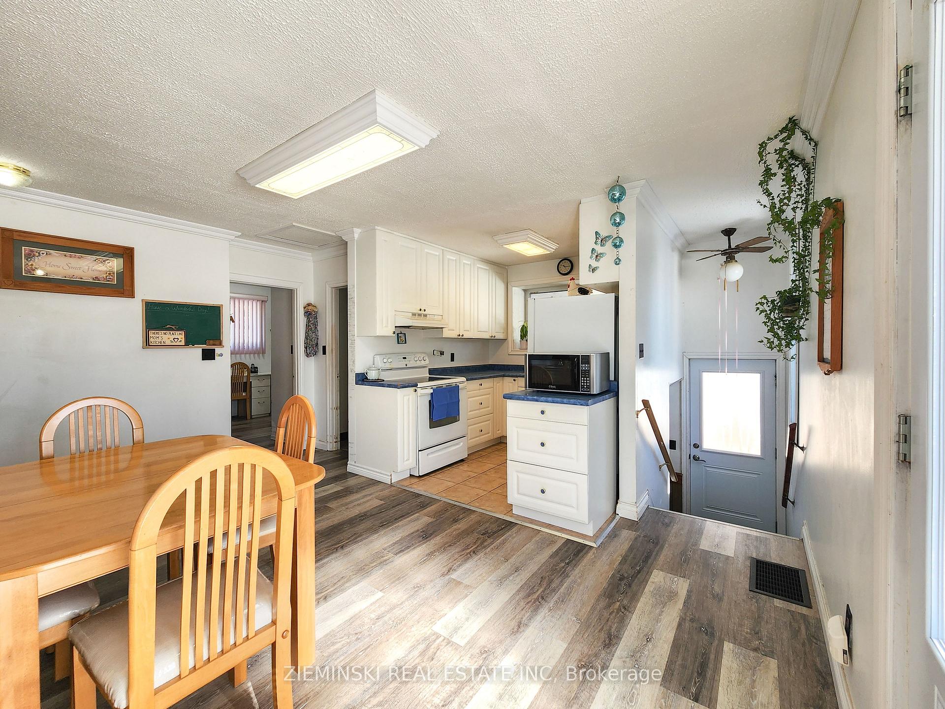 3+1 bedroom, 2 bathroom brick bungalow with a functional layout and space for the whole family. Step inside to a bright and inviting main floor where updated vinyl flooring runs throughout the living room, dining area, and bedrooms, creating a clean, cohesive feel. Natural light fills the living space, making it warm and welcoming for everyday living. The kitchen offers just the right amount of cabinet space and comes complete with appliances. Perfectly functional as-is, with potential to update over time. The adjacent dining area keeps things connected and practical. A versatile main floor bedroom is currently set up with laundry for added convenience, but can be converted back to existing hookups in the basement bathroom. Downstairs, you'll find a full, partially finished basement with a spacious rec room, fourth bedroom, and second bathroom, ideal for extra living space, guests, or a home office. Outside, the front of the home features mature hedging, a spacious deck, and raised garden beds. The large backyard offers a mature hedge for added privacy and plenty of space to enjoy, along with an enclosed carport and storage. Located in a planned neighborhood with minimal traffic and within close proximity to schools and the hospital, this home offers both comfort and convenience. A wheelchair ramp at the front entrance adds accessibility, and key updates include shingles (2015) and furnace (2016).