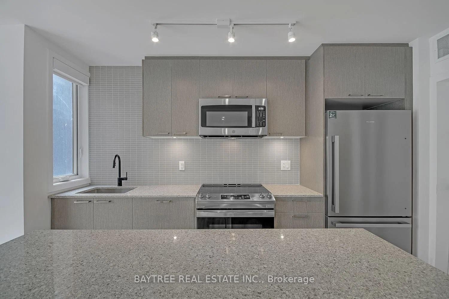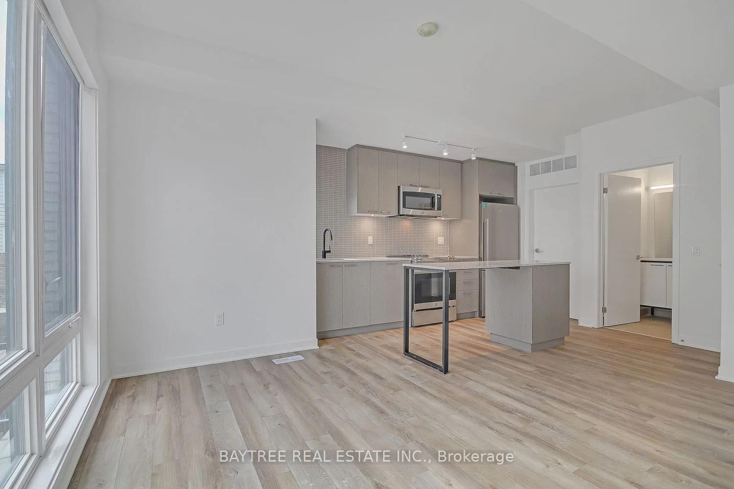 Rarely offered 3-bedroom, 2-bath urban townhome at Reunion Crossing featuring 982 sq. ft. of interior living space plus a 122 sq. ft. private sunken terrace. The modern 2-storey layout includes a spacious main-floor living and dining area with an open-concept kitchen, while the lower level offers three full-sized bedrooms and a full bathroom for added comfort and privacy. The south-facing exposure fills the home with natural light. Featuring premium full-sized appliances, a thoughtfully placed main-floor bathroom, and access to an array of building amenities designed for modern living. The complex also features a playground and splash pad for local children to enjoy. Freshly painted and ready to move in, this home is perfectly situated at the crossroads of The Stockyards, The Junction, and Corso Italia, with the St. Clair streetcar at your doorstep and endless shops, cafes, parks, and recreation nearby. One parking and internet included.