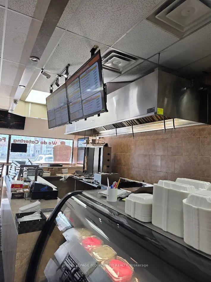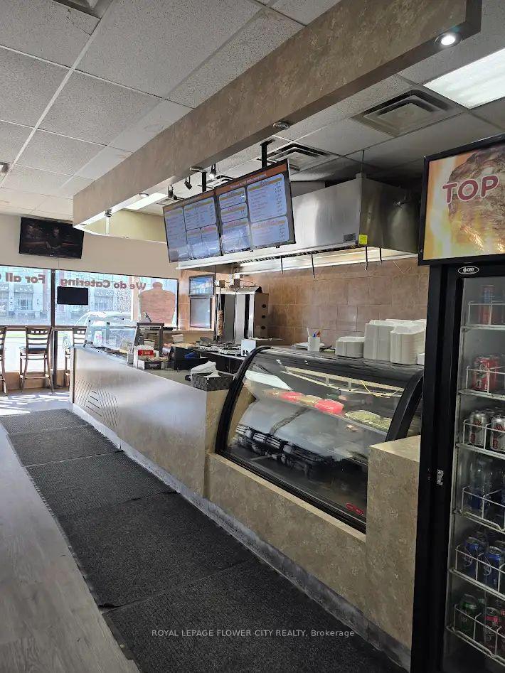 Well-established family-run shawarma business with loyal clientele and strong communitypresence. Clean, well-maintained premises with an efficient layout. Prime location at busyLakeshore Rd & Southdown Rd, surrounded by residential neighborhoods, schools, offices, banks,and major retailers with excellent exposure and steady foot traffic. The restaurant features aspacious dining area with plenty of seating. Rebranding opportunity available. Turnkeyoperation.Rent $4,180/month including TMI & HST (taxes included in TMI). Lease term: 4 + 5 + 5 yearrenewal options.