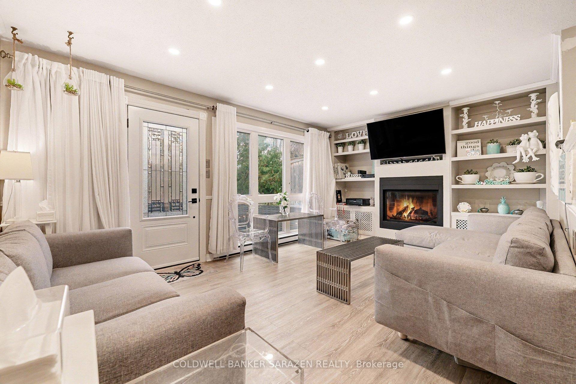 Beautifully maintained 3-bedroom condo townhouse in the sought-after Katimavik neighbourhood, offering an attached garage with inside entry and a bright, inviting layout. The cozy living room features a gas fireplace, built-in shelving, and patio doors that open to a private fenced backyard with a deck and serene wooded backdrop. The kitchen is equipped with stainless steel appliances and a convenient pantry. Upstairs, you'll find three spacious bedrooms and a full main bathroom. This move-in-ready home includes numerous updates such as an upgraded backyard (2024), backyard door (2025), new pot lights (2024), flooring (2020), baseboard heaters (2020), doors (2020), a finished basement (2023), new washer and dryer (2019), and an updated upstairs bathroom (2019). New outlets for the entire home(2023), Outdoor pool. Perfect for those seeking comfort, privacy, and a great location.