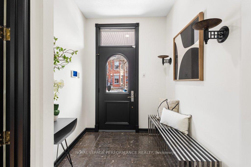 A rare convergence of historic soul and modern engineering, this architectural masterpiece arrives on the market for the first time in 27 years. Situated in the prestigious Golden Triangle on an exceptionally deep lot, the residence sits just 100 meters from the Rideau Canal-a UNESCO World Heritage Site. Meticulously re-imagined as a sun-drenched sanctuary, this historic gem honours its heritage while embracing a bold, contemporary design. The home's centrepiece is a spectacular open staircase spanning three levels, framed by triple-pane windows that summon light from every direction. From soaring ceilings to curated finishes, this 4-bedroom, 3-bathroom residence reflects a commitment to quiet, sophisticated living. The experience begins in a marble-tiled foyer leading to expansive living spaces designed for grand-scale entertaining. The custom kitchen strikes a flawless balance between sleek modernism and industrial edge, featuring high-end appliances and a granite island. This culinary hub flows into a family room addition that opens to a private deck and a lush, Welwyn Wong designed garden. This deep outdoor oasis is a rare find, featuring mature trees, vibrant plantings, and a gas fire pit perfect for evening gatherings. Upstairs, the primary suite is a true retreat, boasting a newly updated ensuite and a private balcony overlooking the serene grounds. A versatile second room on this level, also with a private balcony, adapts as an executive office, bedroom, or yoga studio. The third floor offers two additional bedrooms-one a full suite with its own balcony. Below, the lower level provides rare future potential with high ceilings and a pristine, dry environment. Crowned by a new metal roof, rarely does a property of this scale and integrity become available. This is a once-in-a-generation opportunity steps from Parliament Hill, iconic landmarks, Lisgar Collegiate, and the University of Ottawa. This is urban luxury at its finest.