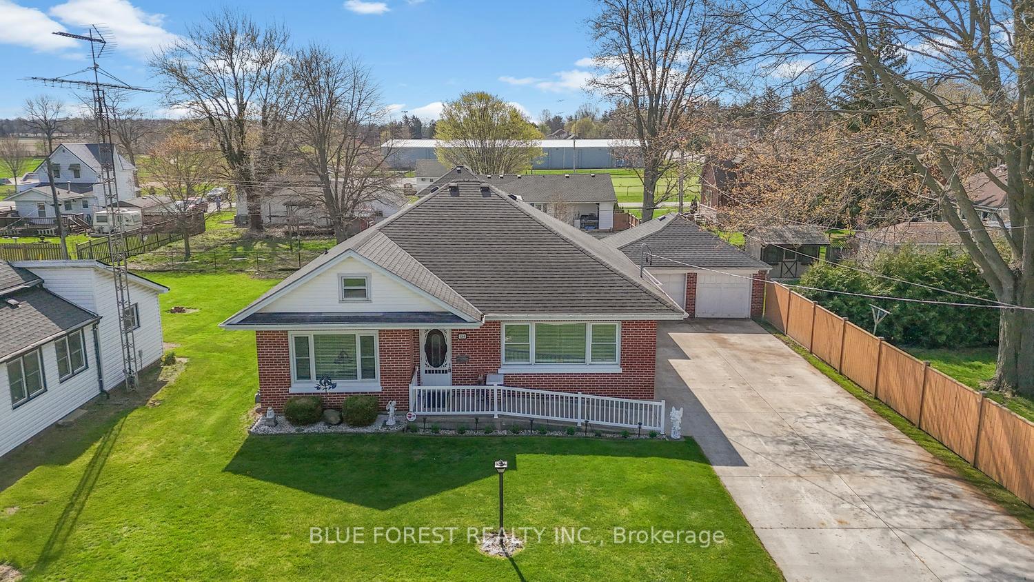 Welcome to 154 Chestnut Street in the heart of West Lorne - a fantastic opportunity to own a solid brick bungalow tucked away on a quiet dead-end street, perfect for families or those seeking a peaceful setting. This well-maintained home offers convenient main floor living with 3 bedrooms and 2 bathrooms, including a spacious primary bedroom featuring a 2-piece cheater ensuite. The large eat-in kitchen provides plenty of room for family meals and gatherings, while the functional layout makes everyday living comfortable and efficient. A unique 2-room loft adds flexible space for a home office, playroom, or guest area, and the expansive attic presents excellent potential for future development with the possibility of additional bedrooms or living space. Outside, you'll find a private, fully fenced backyard designed for relaxation and entertaining, complete with a large gazebo and patio shelter. The detached 2-car garage (with 60 amp service) is conveniently connected to the home by a breezeway, and the massive concrete driveway offers ample parking for up to 8 vehicles or space for your RV. Located just steps from local amenities including parks, a splash pad, and the arena, this property combines small-town charm with everyday convenience. A versatile home with room to grow-don't miss your chance to make it yours!